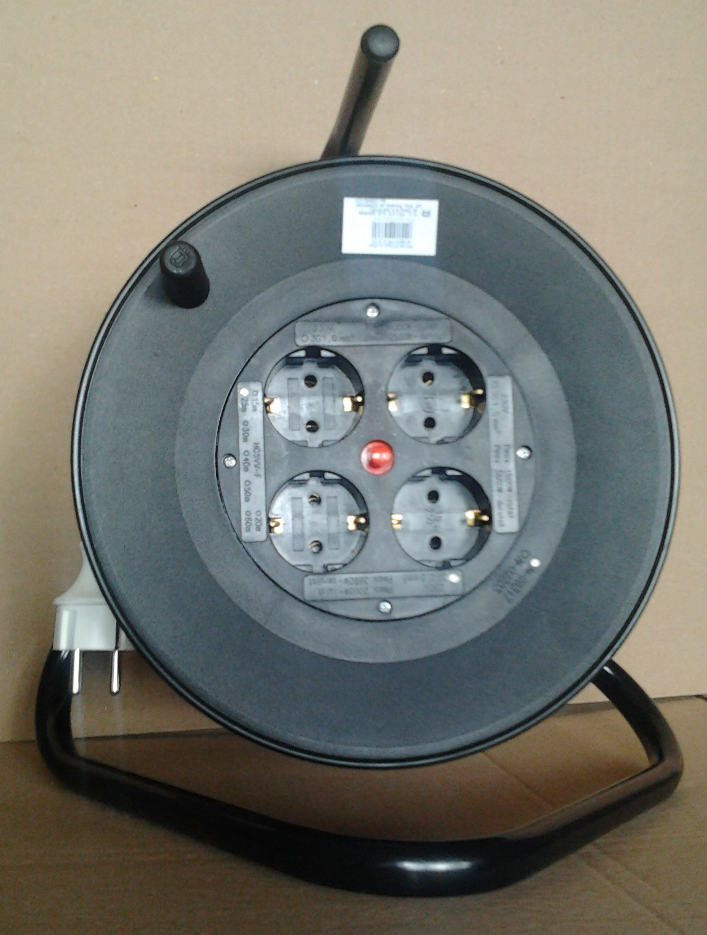Descriere: Prelungitor cu derulor, cu 4 prize si contact de protectie. Tip cablu H05VV-F. Prelungitorul este prevazut cu dispozitiv de protectie termica resetabil manual.