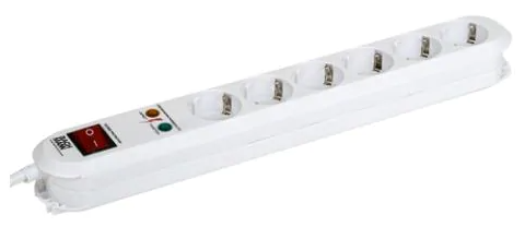 Descriere: Prelungitor cu 6 prize, cu protectie la supratensiune si intrerupator, Bachmann 381.2501K. Culoare: alb.