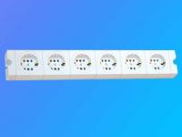 Descriere: Grup 6 prize cu contact de protectie, fara cablu, montaj pe tencuiala. Culoare: alb.