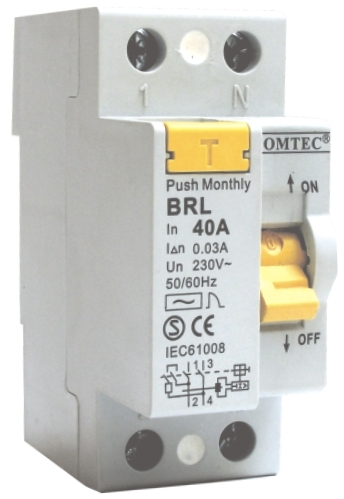 Descriere: Intrerupator automat bipolar cu protectie diferentiala (RCD) - BRL. Montaj prin inclichetare pe sina DIN (35 mm).