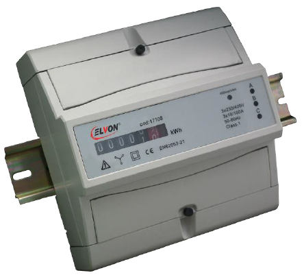 Descriere: Contor de energie electrica analogic, cu montaj pe sina DIN, destinat pentru masurarea energiei active pentru conexiunea directa la retelele trifazate.