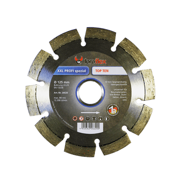 Descriere: Discul diamantat este un produs de inalta calitate, cu un raport excelent preț / performanță. TOROFLEX este cunoscut pentru performanta, siguranta si fiabilitate de la producție la livrare; acest lucru se aplică pentru toate produsele, atat din gama de produse standard cat si pentru cele proiectate special. Toate produsele intrunesc standardul de calitate ISO 9001, si norme riguroase de siguranta in utilizare.